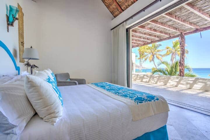 This premium 485 square foot, beachfront suite has plenty of space with a private outdoor patio, swimming pool and jacuzzi. This spacious king size bedroom is fully equipped with a living room beautiful bathroom and an unbelievable view of the sunrise. This suite offers guests an unparalleled resort experience with expansive grounds and breathtaking views of the Sierra de la Laguna Mountain range and the Sea of Cortez. Just a short walk from your private balcony to the beautiful white sandy beach of the Bay of Dreams.